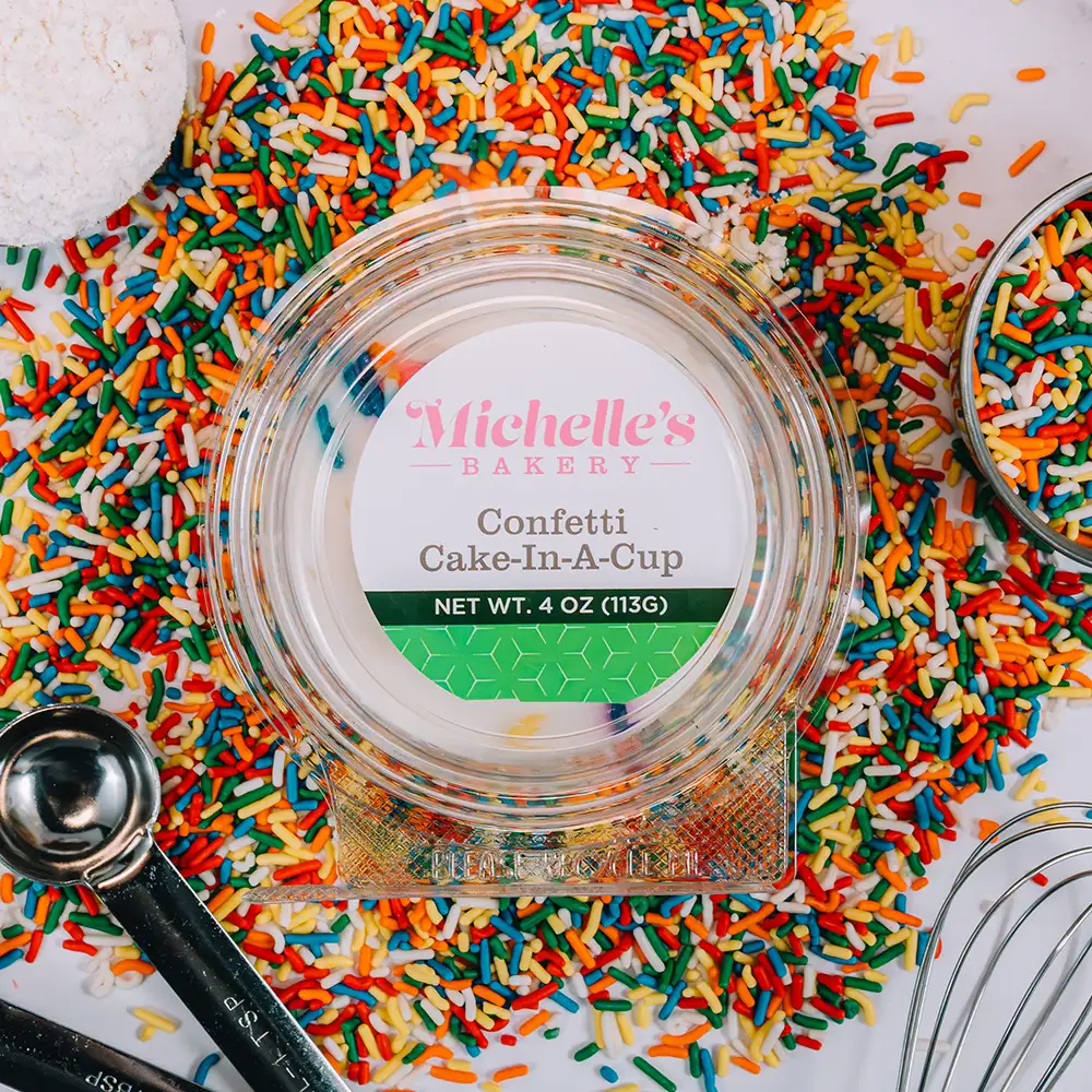 Ingredients: Buttercream Icing (sugar, palm oil, water, canola oil, cottonseed oil, cornstarch, mono- and diglycerides, contains 2% or less of: artificial flavor, citric acid, polysorbate 60, preservatives (potassium sorbate, sorbic acid), salt), Cake Base (sugar, enriched wheat flour bleached (flour, niacin, iron, thiamine mononitrate, riboflavin, folic acid), egg whites, soybean oil, propylene glycol mono- and diesters of fatty acids, leavening (baking soda, sodium acid pyrophosphate, sodium aluminum phosphate, monocalcium phosphate, aluminum sulfate), contains 2% or less of: cellulose gum, dextrose, egg yolks, food starch-modified, mono & diglycerides, natural and artificial flavor, nonfat milk, polysorbate 60, salt, sorbitan monostearate, soy lecithin, xanthan gum), WATER, Sprinkles (sugar, hydrogenated palm kernel oil, corn starch, sunflower lecithin, fd&c colors (yellow #6 lake, yellow #5 lake, blue #1 lake, red #40 lake, red #3 dye), maltodextrin, carnauba wax, vanillin, cellulose gum), Soybean Oil, Potassium Sorbate Contains: Egg, Milk, Soy, Wheat