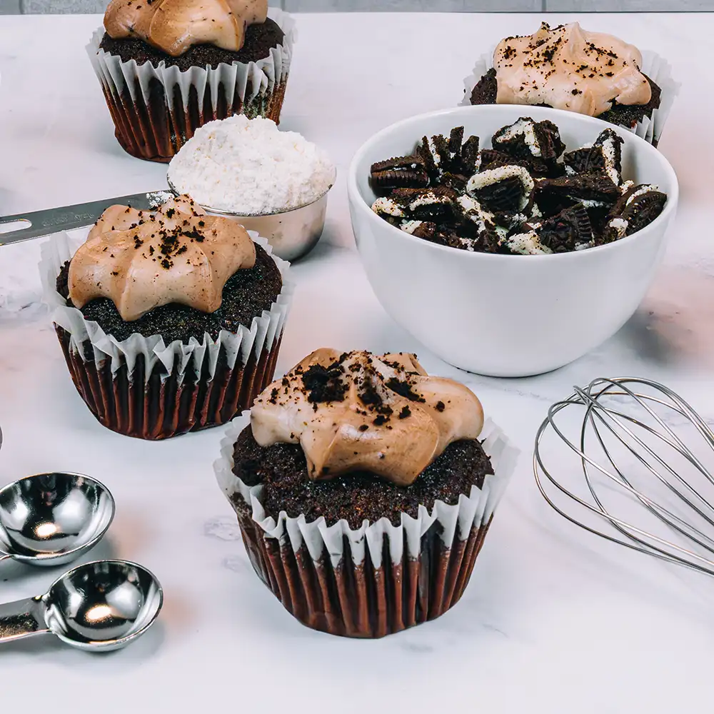 Ingredients: Cake Base (sugar, bleached wheat flour, cocoa powder (treated with alkali), dairy whey (milk), soybean oil, modified food starch, leavening (baking soda, sodium acid pyrophosphate, monocalcium phosphate, soy flour), buttermilk solids, salt, natural and artificial flavor), Buttercream Icing (sugar, palm oil, water, canola oil, cottonseed oil, cornstarch, mono- and diglycerides, contains 2% or less of: artificial flavor, citric acid, polysorbate 60, preservatives (potassium sorbate, sorbic acid), salt), Whole Eggs, WATER, Soybean Oil, unbleached enriched flour (wheat flour, niacin, reduced iron, thiamine mononitrate (vitamin b1), riboflavin (vitamin b2), folic acid), sugar, palm and/or canola oil. cocoa (processed with alkali), invert sugar, leavening (baking soda and/or calcium phosphate), soy lecithin, salt, chocolate, natural flavor, Potassium Sorbate (preservative), Sorbic Acid (preservative) Contains: Egg, Eggs, Milk, Soy, Wheat