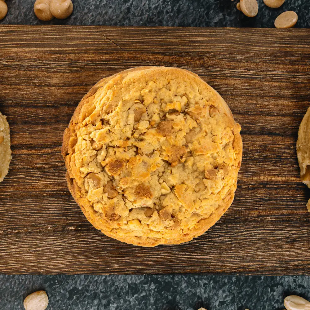Flour (Bleached Wheat Flour (Bleached Wheat Flour, Niacin, Reduced Iron, Thiamine Mononitrate, Riboflavin, Folic Acid), Malted Barley Flour), Reese's Peanut Butter Chips (Partially Deflated Peanuts, Sugar, Hydrogenated Vegetable Oil (Palm Kernel Oil, Soybean Oil), Corn Syrup Solids, Dextrose, Reduced Protein Whey, Contains 2% or Less of the Following: Palm Kern Oil, Salt, Vanillin, Artificial Flavor, Soy Lecithin), Sugar, Reese's Peanut Butter (Roasted Peanuts, Sugar, Contains 2% or Less of the Following: Hydrogenated Vegetable Oil (Rapeseed, Cottonseed, and Soybean Oil), Salt, Peanut Oil, Monoglycerides, Molasses, Cornstarch), Margarine (Vegetable Oil Blend (Palm Oil and Soybean Oil), Water, Salt, Contains Less Than 2% of the Following: Soy Lecithin, Vegetable Mono & Diglycerides, Potassium Sorbate (Preservative), Citric Acid (Preservative), Natural & Artificial Flavor, Beta Carotene (Color), Vitamin A Palmitate Added, Whey), Peanuts, Whole Eggs, Brown Sugar (Cane Sugar, Molasses), Contains 2% or Less of the Following: Sea Salt, Peanut Oil, Shortening (Interesterified Soybean Oil, Hydrogenated Cottonseed Oil), Vanilla Flavor (Water, Sugar, Caramel Color, Artificial Flavor, Citric Acid (Preservative), Sodium Benzoate), Baking Soda, Potassium Sorbate (Preservative), Sorbic Acid (Preservative). Allergens: Contains Egg, Wheat, Soy, Milk, Peanuts; Made in a Facility With Tree Nuts.